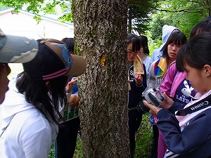 午後は、明日からの調査のために必要な樹木の分類方法について学んだ。宿舎の周辺の樹木について説明を聞いた後、実際に「蒜山の森」に入って知識の確認をした。夜は、分類の基礎知識についてのテストを受けた。
