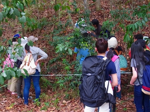 森林の講義の後で、実際に教室を出て、キャンパス内の林に入って、森林の調査の仕方について教えていただいた。