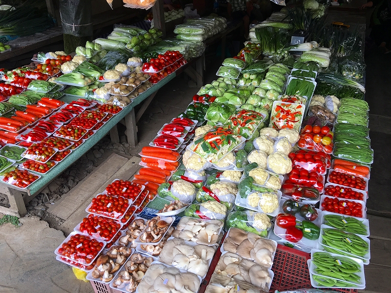 キナバル公園からポリノ温泉に行く途中に、野菜や果物を売る露店が立ち並ぶ市場がある。