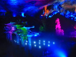 比較的大きな鍾乳洞でしたが、外の気温は35℃ですが洞内の気温は18℃で涼しかったです。岡山の井倉洞や山口の秋吉洞などは多様な鍾乳石を形を楽しむようなシンプルな照明ですが、この鍾乳洞は赤や青にライトアップされていて、演出が目立ちすぎて好感の持てるものではありませんでした。