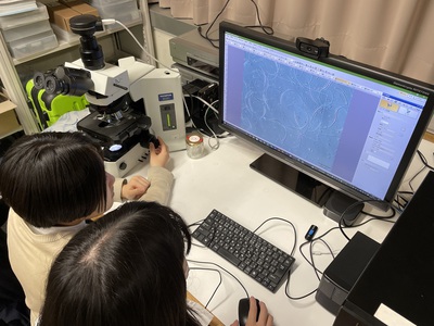 広島大学両生類研究センターからイベリアトゲイモリの成体が送られてきました。これまで、在来種のアカハライモリやシリケンイモリの研究を続けてきましたが、繁殖についてさらに詳しく調べるために、新規モデル生物のイベリアトゲイモリを材料に研究することにしました。人工授精に挑戦しようとしているのですが、まず前段階で精子を観察することにしました。ホルモンを2回注射することで、精子を採取し、微分干渉顕微鏡で観察することができました。