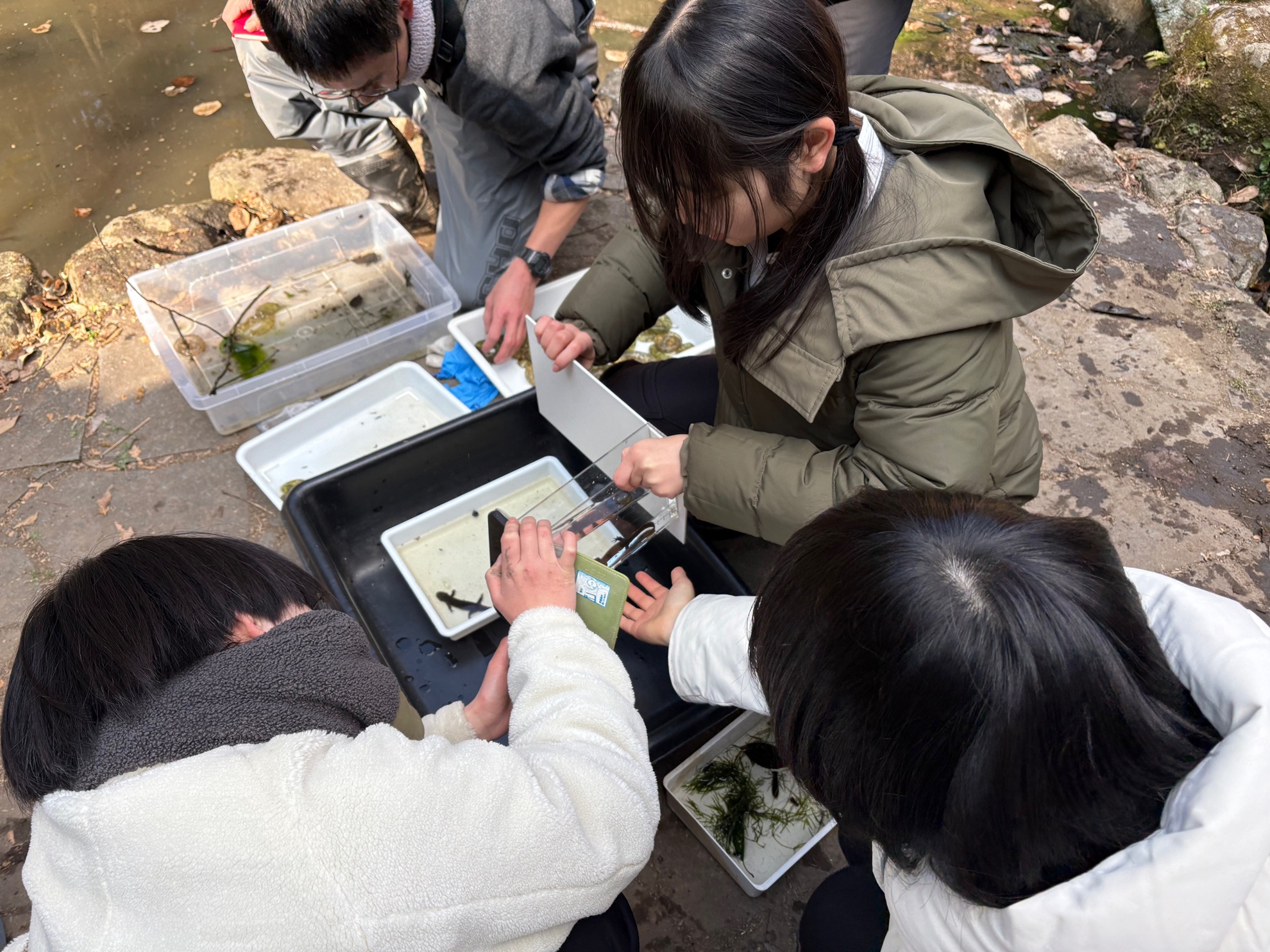 ・生息地調査を通して、自然下での個体密度や栄養状態、卵嚢の状況、周辺の森林環境などを知ることができ、研究を進める上で大きな参考になりました。