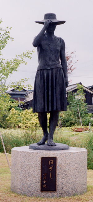 この銅像は、図書館の設立記念として設立された。この銅像は、船穂町町長と船穂町小学校校長が上京したときに偶然、東京八州北口の田中画廊で、船穂町出身である小川の遺作品を発見し、その複製品を作った。 |