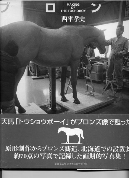 | 競走馬「トウショウボーイ」のブロンズ像を制作する過程を詳細に説明されている本で、講演後学校に寄贈していただいた。吉備人出版「ブロンズ」(著者・西平孝史)定価3000円。 |