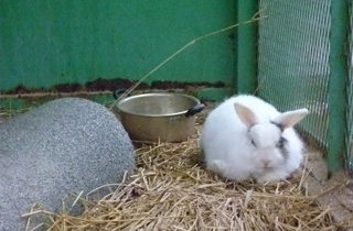 ウサギ 屋外の飼育小屋にオス・メスで敷居をつけてある。