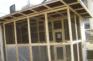 | うさぎ | 一匹で飼われており、かわいそう。餌はよくあった。 床は砂で、網はアルミ。 あまり日が当たらなく、周りはビニールで囲まれていた。 |