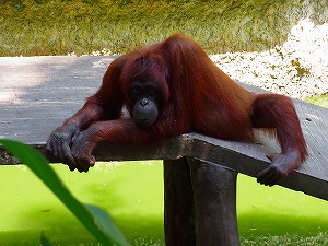 今日はマレーシアの代表的な動物でありながら、野外では近よって観察しにくいオラヌータン、テングザル、ゾウ、サイチョウなどを見ることにしました。